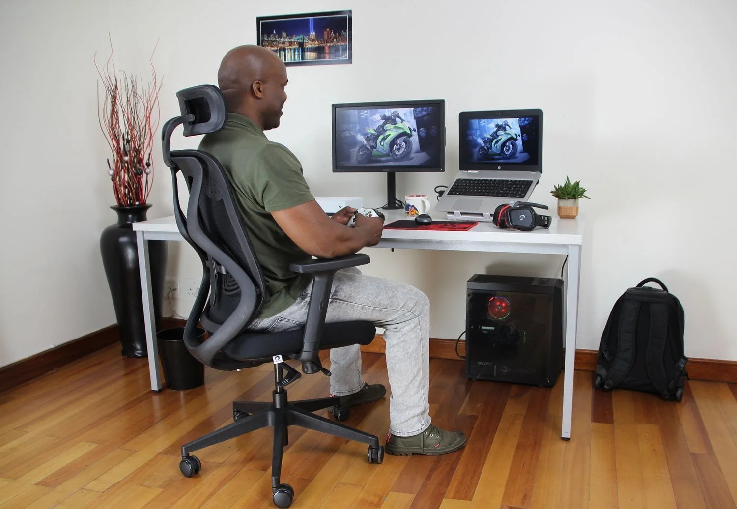 - Premium black mesh backrest.